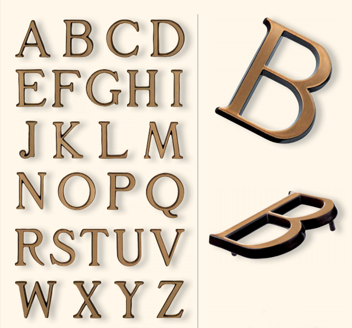 Caggiati - бронзовые буквы, итальянские мемориальные аксессуары из бронзы в наличии и под заказ